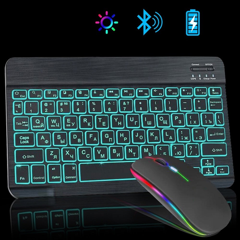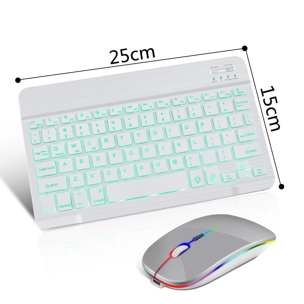 Teclado e mouse Bluetooth sem fio RGB.